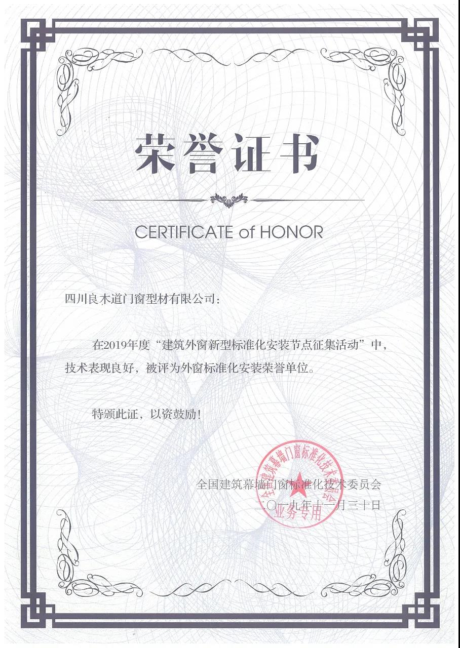 Since 2019, Sichuan LEAWOD Window and Door Profiles Co., Ltd has obtained the Double Level 1 qualification for the production and installation of building doors and Windows. In the same year, the company was invited to participate in the solicitation of new standardized installation nodes for exterior Windows of buildings held by the National Technical Committee for Standardization of Building Curving Wall Doors and Windows in 2019, and went to Beijing in November 2019 to demonstrate the standardization installation technology of LEAWOD system doors and Windows. It has been highly recognized by experts from all over the country and unanimously evaluated by the Standardization Committee and the Organizing Committee. Decided to award Sichuan LEAWOD Window and Door Profiles Co., Ltd the title of national standardized installation honorary unit .